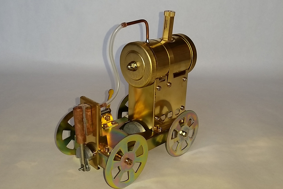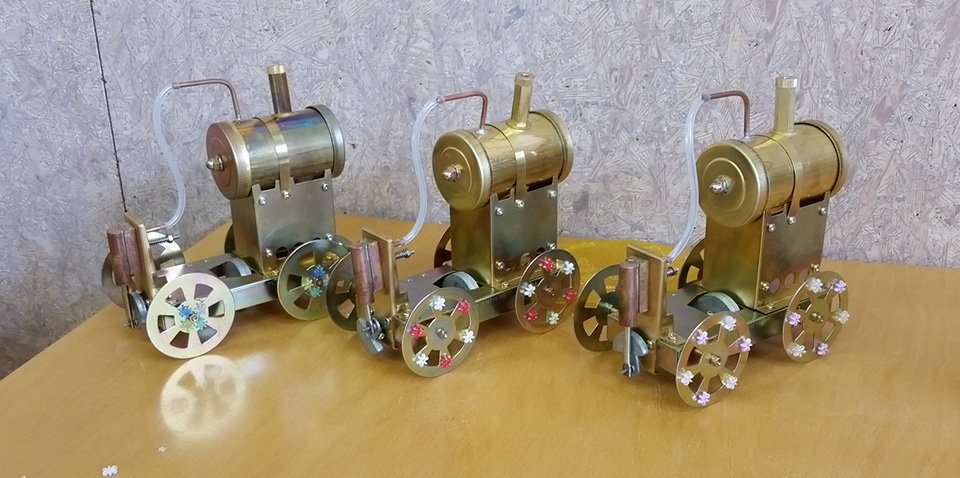 水を沸騰させると水蒸気に変化し、元の体積の1,600倍以上にもなると言われています。世界の発電所のほとんどがこの水蒸気の力を利用して、電気を起こしているのです。近年、見ることの少なくなった蒸気機関車も同様に、水蒸気の力を利用して車輪を回すことで進んでいきます。この水蒸気の原理を分かりやすく紐解いたものが、ベビーエレファント号になります。金属加工の技術はもちろん、科学の勉強にも使用していただけます。
